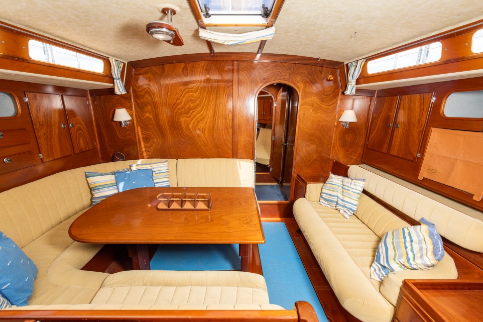 The interior of JEMMA II reflects Amel's commitment to excellence with a spacious saloon, a fully equipped galley, and luxurious accommodations designed for ultimate comfort at sea.