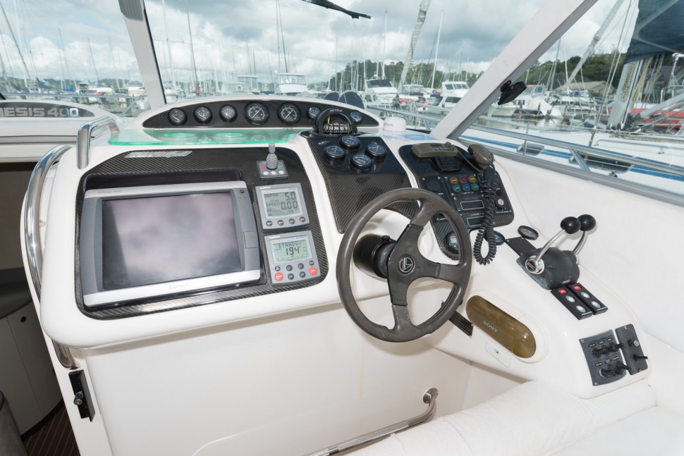 A fantastic sporty ride, she banks through turns with impressive acceleration and speed while still being easy to manoeuvre and dock with twin engines and a bow thruster.