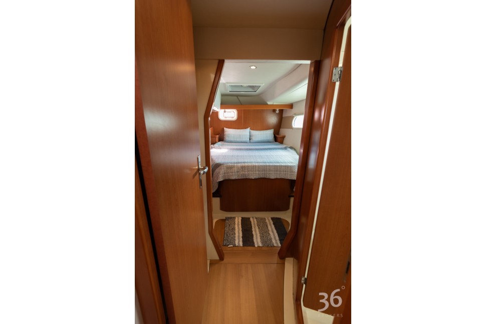 This 3 cabin Owners Version features a wide beam hull, which offers generous space for both living areas and storage. The starboard hull is very open and features a study/lounge area and a huge forward head/shower. Large windows in the main salon offer plenty of natural light, with an aft galley and table seating forwards. There is a full-sized nav station starboard forward, and the option to fit a second internal helm here.