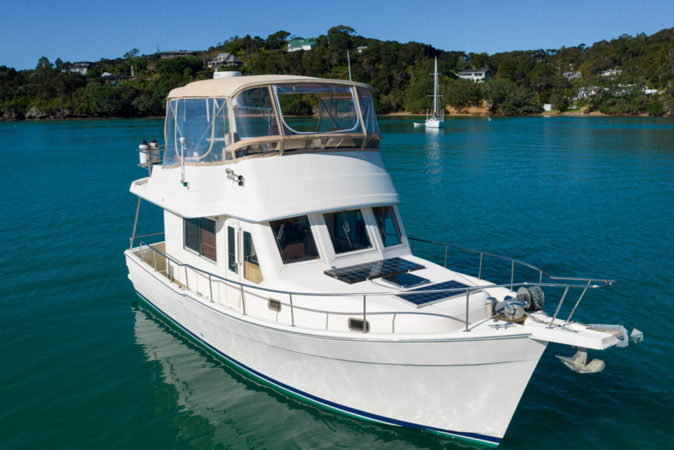 The trawlers are often referred to as blue water cruising because they are tough, safe, and well-suited to handle rough weather. Built and designed in America, the solid glass hull and high flared bow make this Mainship 34 Trawler an attractive NZ cruiser. Designed to move down the U.S intercoastal waterways, cruise the Florida coast, and cross the Gulf to the Caribbean. These trawlers fall into the category of sea-worthy, capable boats for their size.