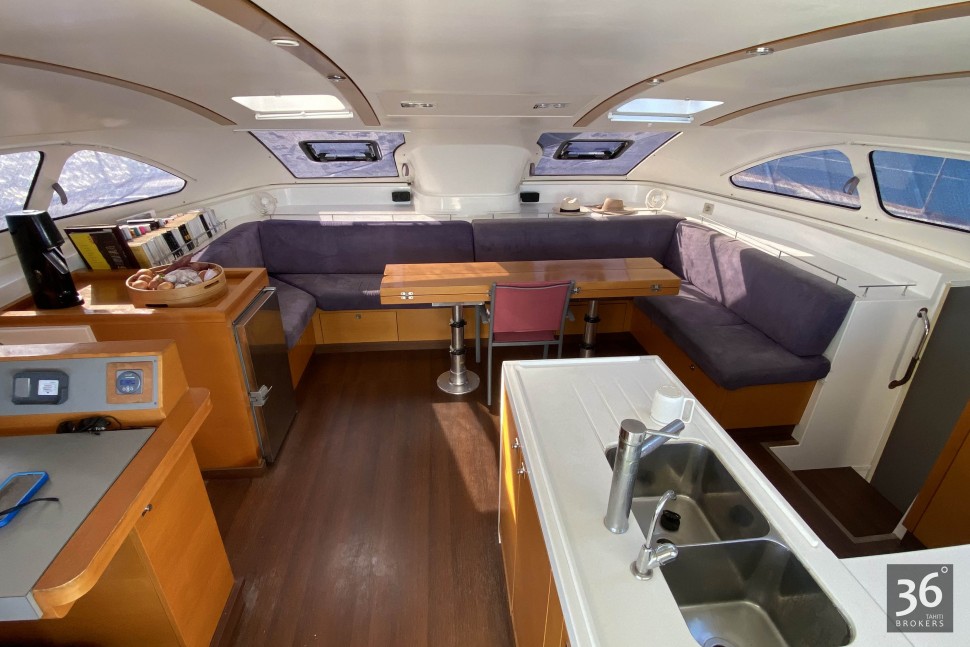 The very pleasant U-shaped kitchen with its large work surface opens directly onto the cockpit, ideal for passing dishes!