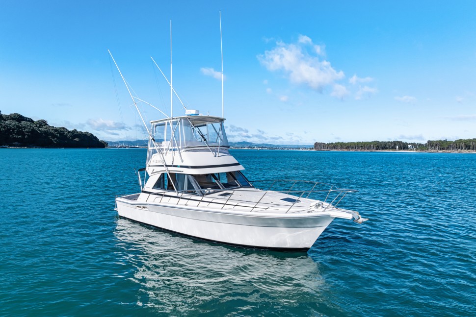 The Riviera 36 lives up to its "convertible" name, excelling at both sport fishing and luxurious cruising. Renowned for its build quality, this vessel lets you comfortably explore the open waters of New Zealand or enjoy coastal adventures.