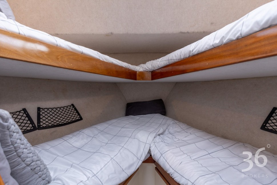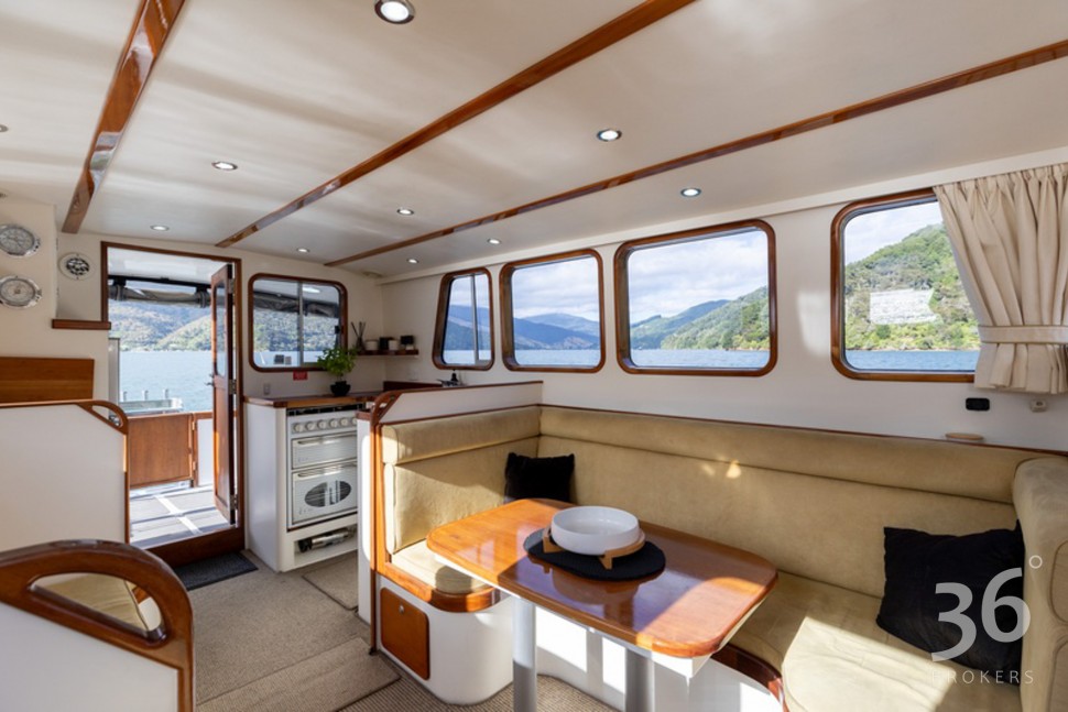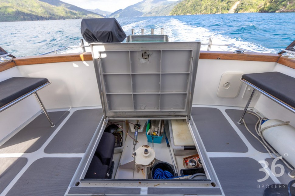 Powered by a well-proven late model Perkins shaft drive diesel, she cruises smoothly, effortlessly & economically at 8kts. Manoeuvring is a breeze with her two-station steering, bowthruster, door by the helm and generous walk around decks. Her comprehensive array of navigation equipment means that won’t get lost and those fish do not stand a chance!
