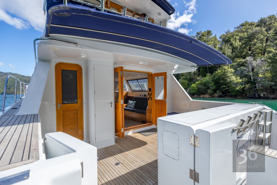A smooth and efficient journey to your destination is assured with the planning hull designed by Roger Hill. Tawaki can cruise at 19 knots with ease and reach a top speed of 25 knots thanks to her twin Caterpillar 350-hp engines.
