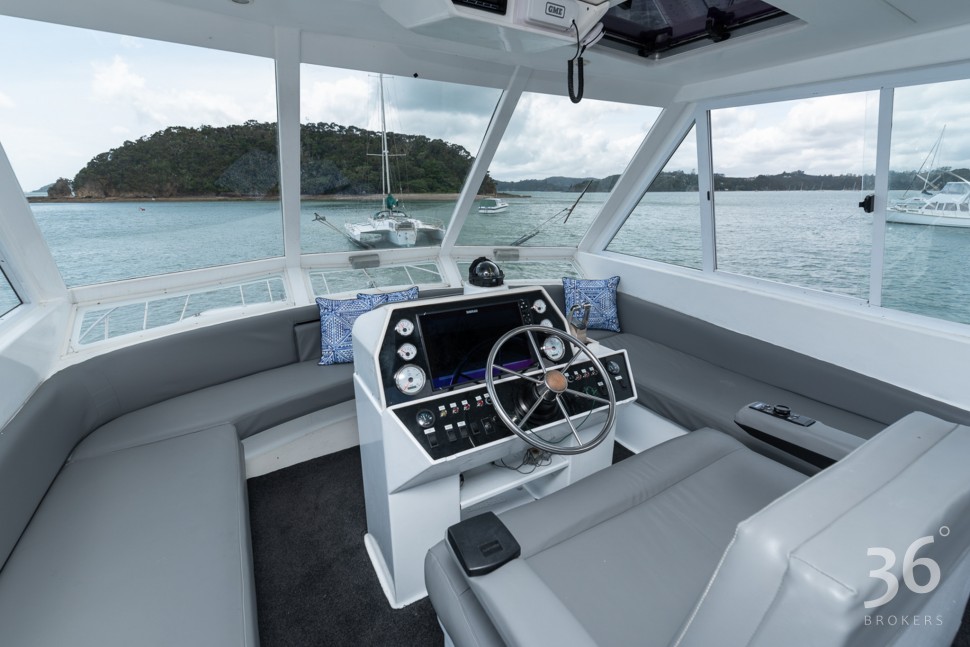 The cockpit is hugely spacious at 4.5m beam and her extended duckboard provides a great space for fishing and divers alike. The single level saloon and galley is expansive, bright and light, very well set up for entertaining guests. The social flybridge is newly upholstered, the perfect spot to enjoy sunsets and keep the captain company.